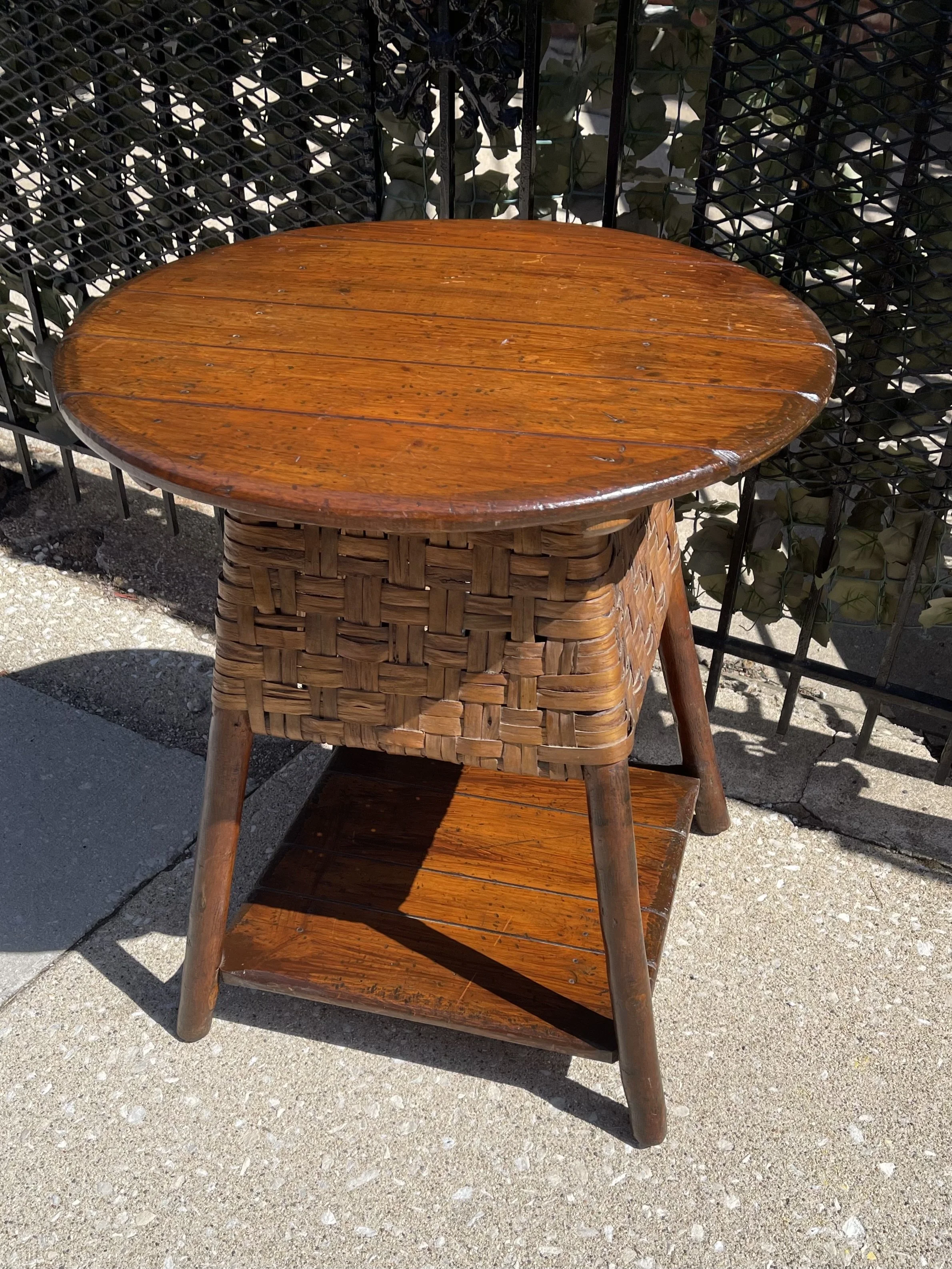 Featured in Old Hickory Furniture Company’s 1937 catalog, this distinctive occasional table is highly desirable for any rustic collection.